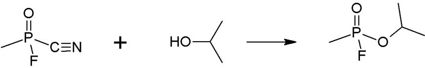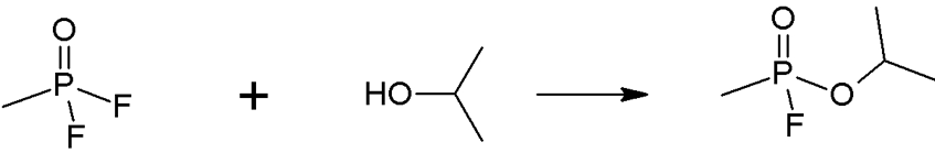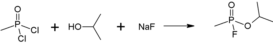 Synthesis of sarin and its analogues It would seem, preparation methods of sarin and its analogues should be secret. However on the above-mentioned Wikipedia pages there are not only formulas, but also schemes of synthesis of these compounds. For example, the simplest synthesis for “the most popular” sarin is an esterification reaction given on English page [5]: