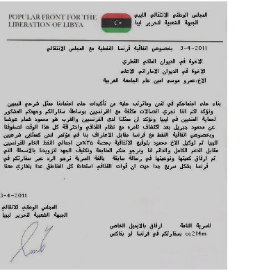...In regards to the France Oil Agreement with the popular front for the liberation of Libya