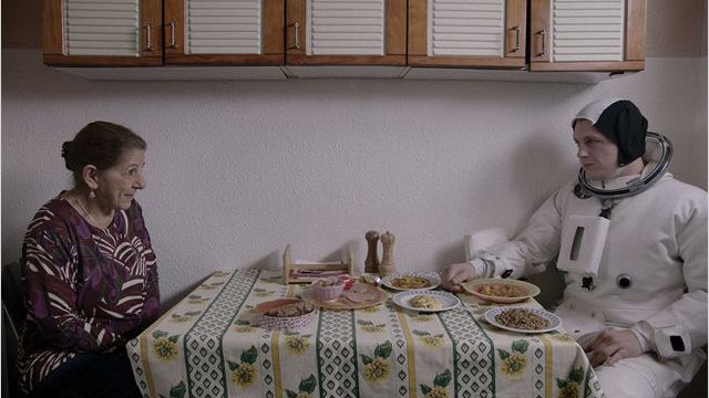 Пожалуй, самая оглушительно смешная сюжетная линия - третья абсурдистско-юмористическая история проклятой многоэтажки, где буквально на голову добропорядочной тётушке арабского происхождения падает пепелац с американским астронавтом, не сумевшим выполнить полет в космос и совершившим посадку на крышу многострадального дома (надо видеть рожи двух обдолбанных торчков, типичных представителей французского общества, на глазах которых с неба падает космический агрегат). Американский астронавт в нелепом скафандре (лучшая, на мой взгляд, роль Майкла Питта), пытается с бабкиного телефона дозвониться в НАСА, чтобы попросить о помощи, но на том конце провода опасаются сокращения финансирования космических программ, поэтому предлагают астронавту пока затихариться и перекантоваться в гостеприимной квартире французско-арабской бабушки. Бабушка незваному гостю из космоса не нарадуется - теперь есть для кого готовить кус-кус по вечерам (родной сын бабушки пребывает в местах не столь отдаленных), с кем вести душевные беседы, не понимая при этом ни слова (бабуля не знает английского языка, пришелец из космоса - французского и арабского, тем не менее коммуникация проходит на удивление легко и замечательно), и в качестве приятного бонуса - американские астронавты умеют чинить протекающие кухонные краны.