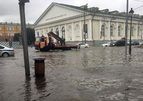 В самом центре столицы, в районе Манежной площади, Тверской улицы, Охотного ряда, практически полностью парализовано движение из-за высокого уровня воды от дождя на дорогах и других территориях улично-дорожной сети, сообщает корреспондент ИА «Моссовет».