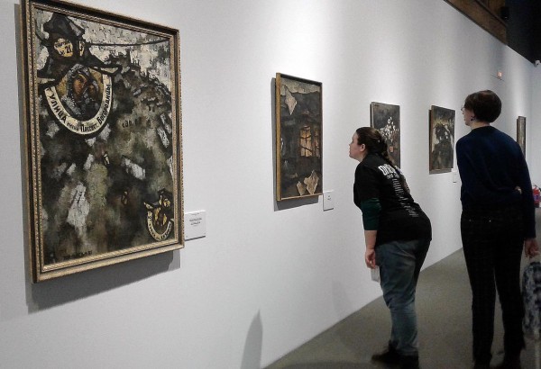А теперь о том, что не радует. Немногочисленный народ на выставке кучковался в основном не у Рабина, а в других залах, где экспонировались халтурные портреты обнаженных селянок с исполинскими формами, деятелей культуры (одетых) и, конечно же, обязательные нынче святые, иконки, церквушки, деревушки и все какое.