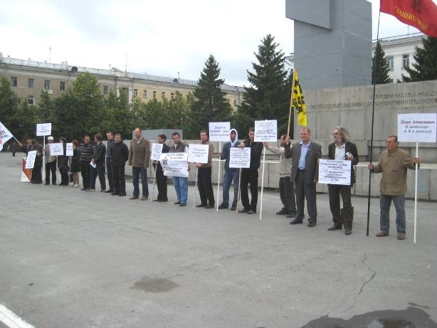 В действиях некоторых работодателей и бездействия местной власти мы усматриваем, прежде всего, наступление на законные права работников состоять и работать в независимом от властей и работодателей рабочем профсоюзе «Защита». Вот только два показательных примера - как и в первом пикете, проведённом неделю назад, в сегодняшнем участвовали работники ликвидированного в начале июня предприятия ОАО «Курганэнергоремонт». Вместе с предприятием, как бы попутно, ликвидированы рабочие места всех членов первичной профсоюзной организации «Защита-Ремонт». Участвовали в пикете и работники ООО «Промстрой», которых работодатель среди лета вдруг отправил в вынужденный простой.