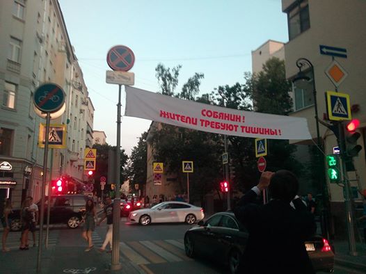 "Сегодня пьяная толпа опять всю ночь орала под окнами. К вечеру на Малой Бронной появилась вот такая растяжка".