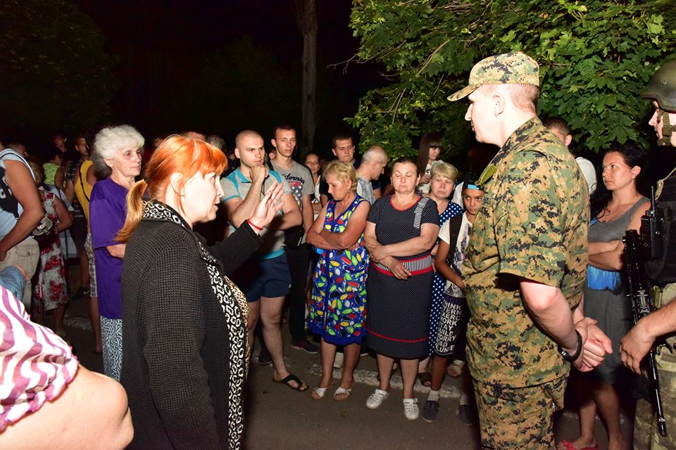 "Сегодня ночью, в Торецке (оккупационный режим переименовал Дзержинск в Торецк - прим. ред.), группа лиц из числа местных жителей, ранее судимых, лиц, находящихся в состоянии алкогольного опьянения, среди которых были и женщины, попыталась блокировать перемещение наших военных по городу. Всего около 100 человек.