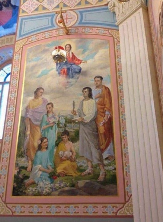 Вот в Казахстане, по чудесному стечению обстоятельств, бывший аким (губернатор) Костанайской области изображен на купольной росписи в рудненском соборе Иоанна Богослова. Другой популярный протодиакон Русской православной церкви Андрей Кураев в своем личном блоге тогда заметил: «Бывало, что лики спонсоров (князей, императоров) появлялись в росписи храмов. Но обычно это было внизу на западной стене, в притворе, у входа. А тут - под куполом, в небесной выси. Возводит молящийся очи горе - и видит «большого брата».