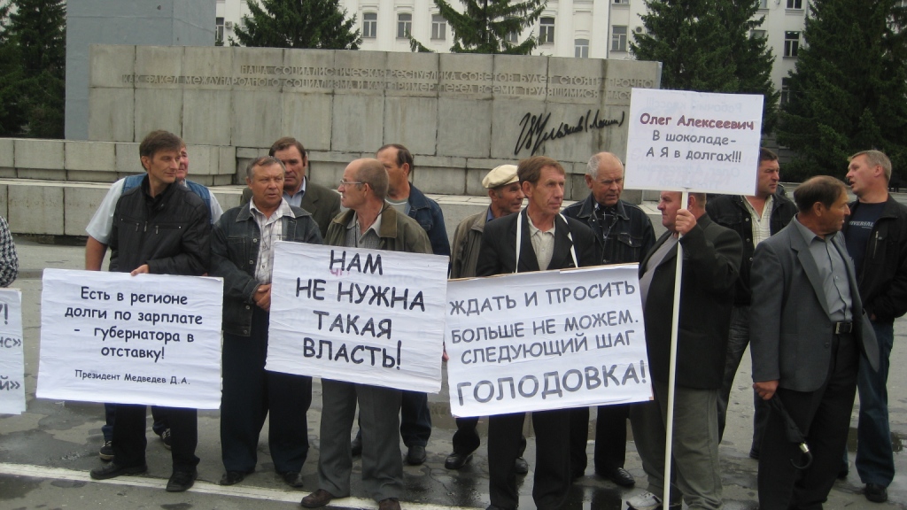 В пикетах на площади им В.И. Ленина, напротив Правительства Курганской области, приняли участие бывшие и работающие работники ОАО «Регион-Автотранс-Курган», ОАО «Промстрой», и некоторых других предприятий Кургана. Например, задолженность по зарплате перед сокращёнными работниками владельцев  ОАО «Регион-Автотранс-Курган» составляет в среднем по 40 тысяч рублей каждому. Как говорят, таких работников - не менее тысячи человек.