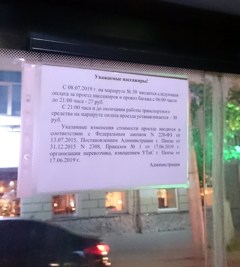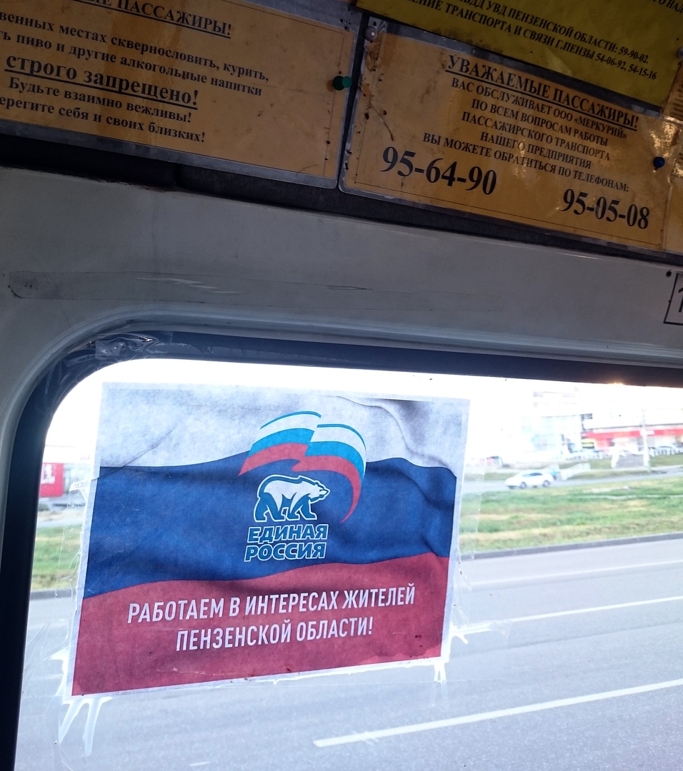 Объявления о новых тарифах на всякий случай размещены в маршрутках и автобусах. Сюр ситуации заключается в том, что объявления перевозчиков соседствуют с агитками единороссов, на которых утверждается, что «Единая Россия» работает в интересах жителей Пензенской области.