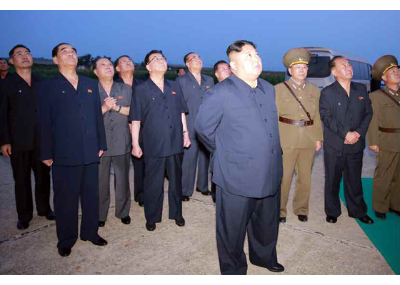 Уважаемый высший руководитель встретился с руководящими работниками, учеными и рабочим классом, трудящимися в области оборонной науки, успешно подготовившими этот запуск для демонстрации силы, и сфотографировался на память с ними.