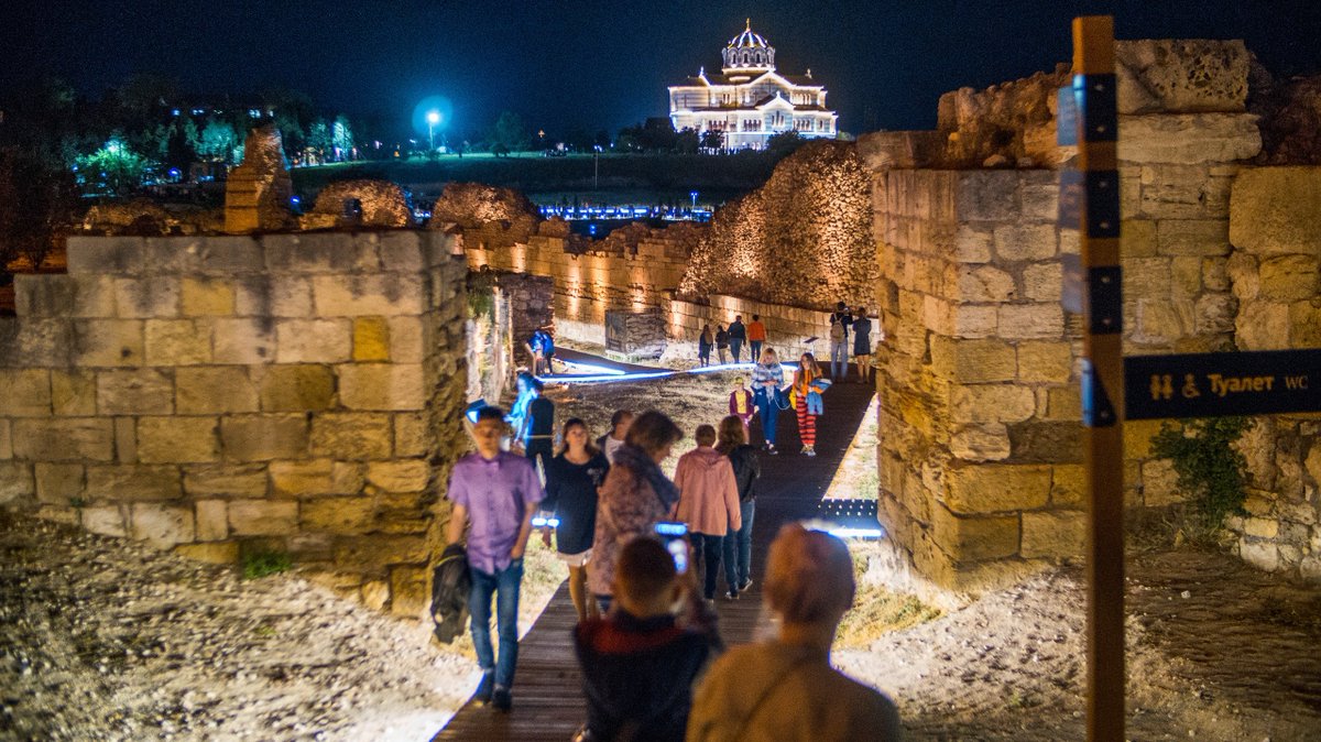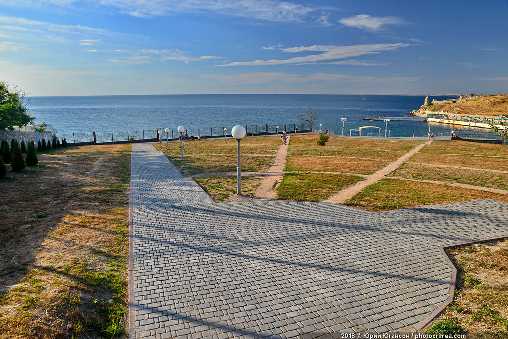 Пляж "Солнечный" сделали очень красивым, но сильно расчистили от "зеленки" - кипарисов, под которыми гнездились охранники, и которые раньше был парком имени Ахматовой. Теперь все просматривается очень хорошо, и любому высокому гостю будет не страшно. И территорию Херсонеса обнесли качественным забором, ликвидировав множество дырок, по которым туда обыкновенно проникали местные, чтобы купаться. Теперь купаться там вообще запрещено, а дорожки с подсветкой подняты над грунтом примерно на полметра - никакую бомбу не заложишь. Можно принимать высоких гостей.