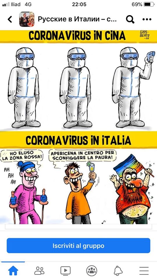 Львиная доля заразившихся в РФ - зарпазилась в Италии. Мы по-прежнему ездим отдыхать к теплому морю в объятия коронавируса, и нам это море по колена или чуть выше. При этом жесткий карантин с Китаем, почти жесткий с Ираном, а Италия - свободная страна, и для людей, и для вирусов.