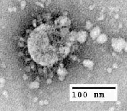 Электронно-микроскопическое изображение SARS-CoV в цитоплазме зараженной клетки