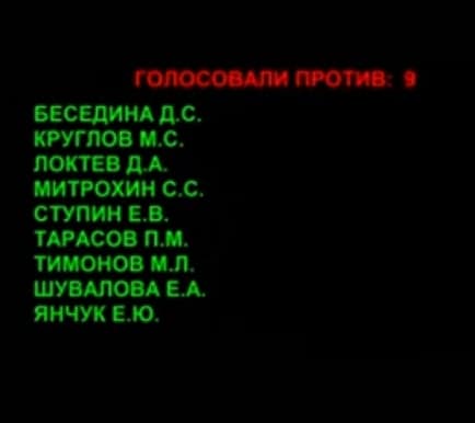 Девять человек против. А как же 21 "оппозиционный" депутат, которых избрали согласно "умному голосованию" имени Навального-Каца? Почему их, "оппозиционеров" больше двадцати, а на табло мы видим только девять?