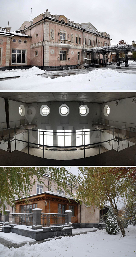"Здание в классическом стиле выполнено из розового мрамора. Дом предназначен под чистовую отделку. Согласно планировке, на первом этаже будут расположены гостиная, столовая, кухня, зимний сад. На втором этаже запроектировано пять спален с ванными и гардеробными. Здесь же будет тренажерный зал. Еще две спальни — в мансарде. Помимо основного здания на участке будет дом для персонала, гараж на пять автомобилей и беседка с фонтаном", - говорится в описании лота.