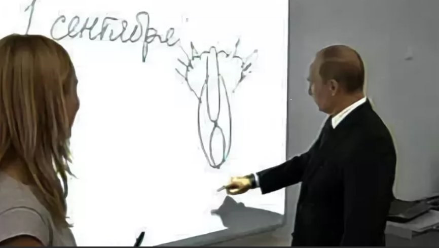 Помните кошку? Это когда Путин приехал поздравить каких-то школьников с 1 сентября и нарисовал им картину "Кошка. Вид сзади".