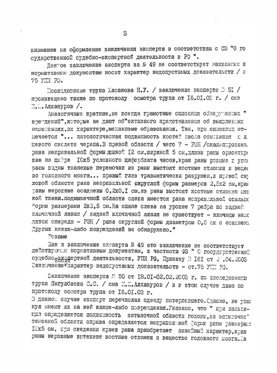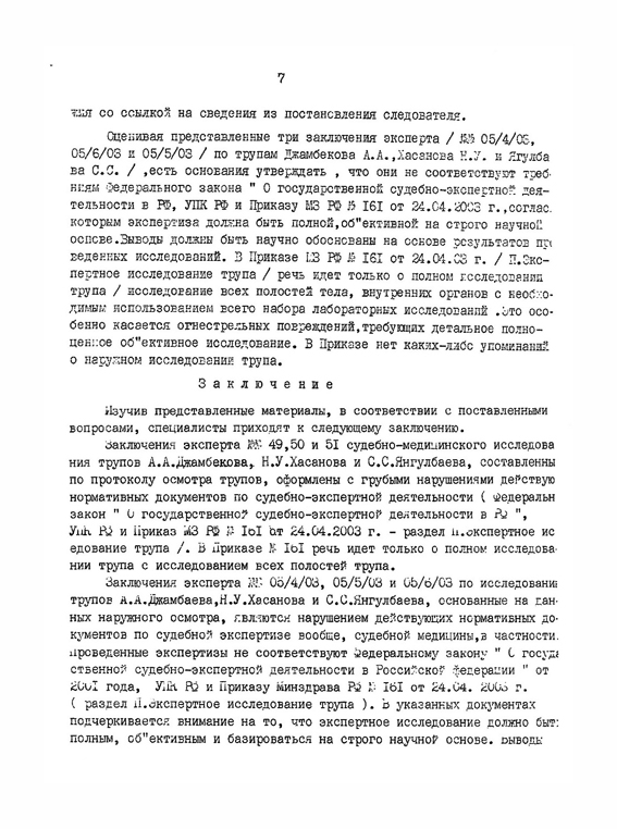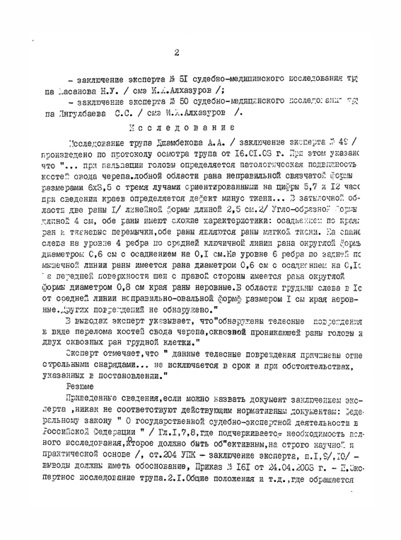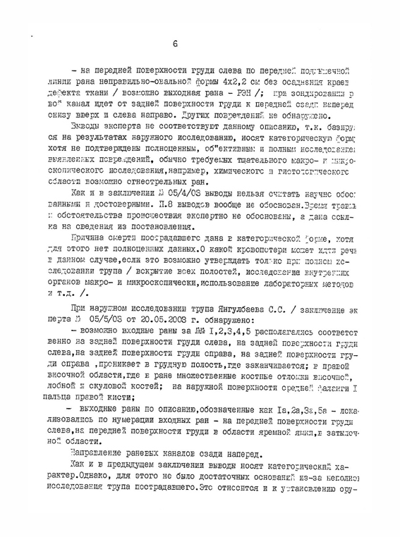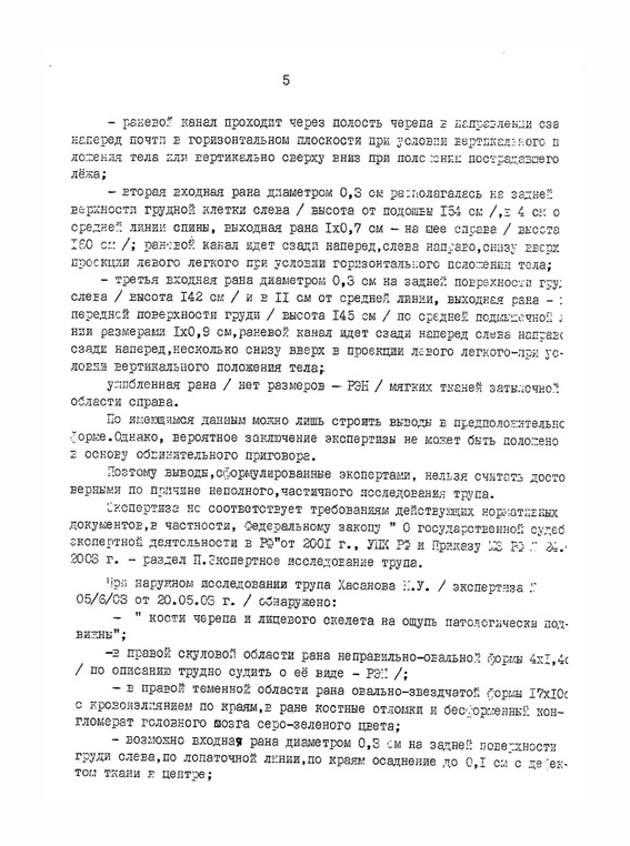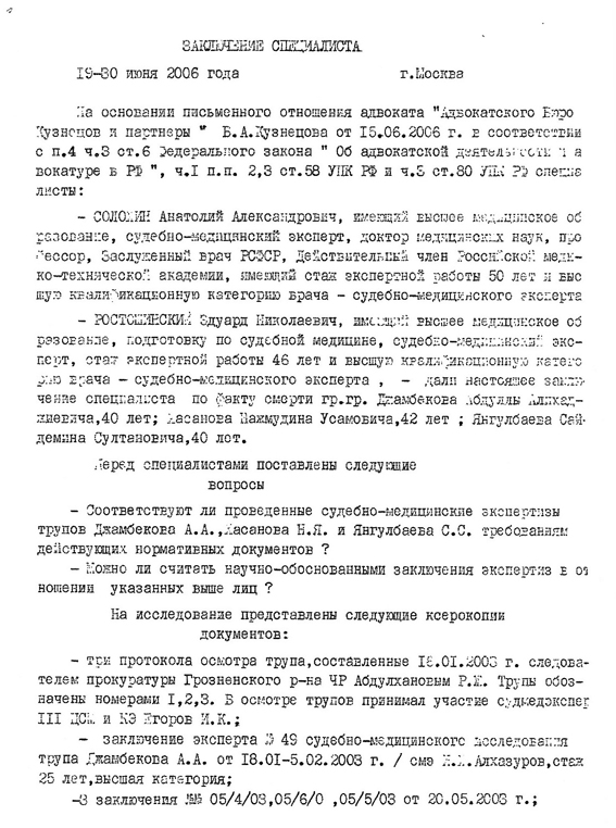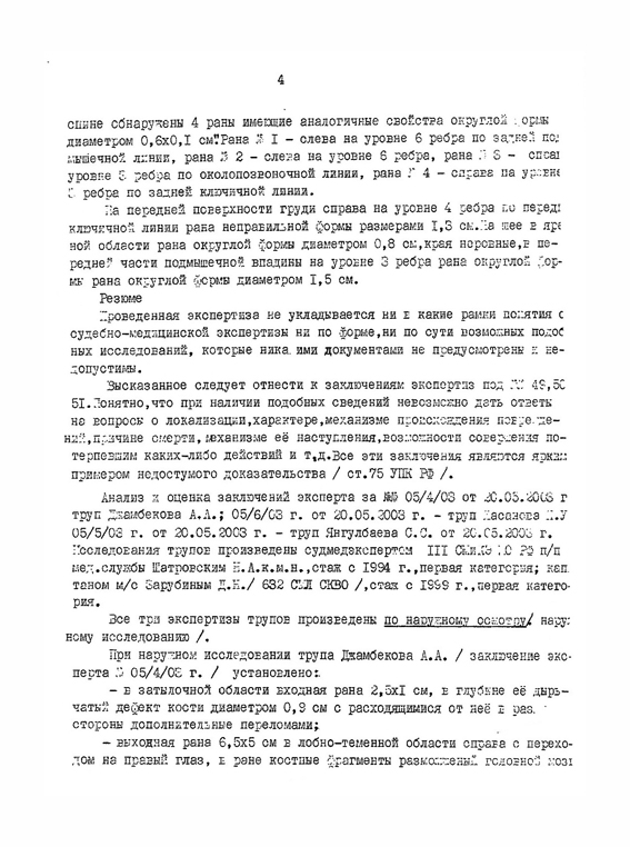Судья Северо-Кавказского военного окружного суда полковник Цыбульник отказал стороне защиты по делу Аракчеева-Худякова в праве представить на судебном заседании экспертизу, подготовленную высококлассными специалистами в области судмедэкспертизы профессором Солохиным А.А. и экспертом-криминалистом Ростошинским Э.Н., которая ставит под сомнение данные экспертизы, проведенной стороной обвинения. В связи с невозможностью использования данных материалов в процессе представляем эту экспертизу заинтересованному читателю.