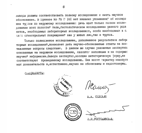 Покойный профессор Солохин, так и не дождавшийся приглашения в суд в качестве специалиста по делу офицеров Аракчеева-Худякова, имел 50-летний стаж экспертной работы и высшую квалификацию врача - судебно-медицинского эксперта.