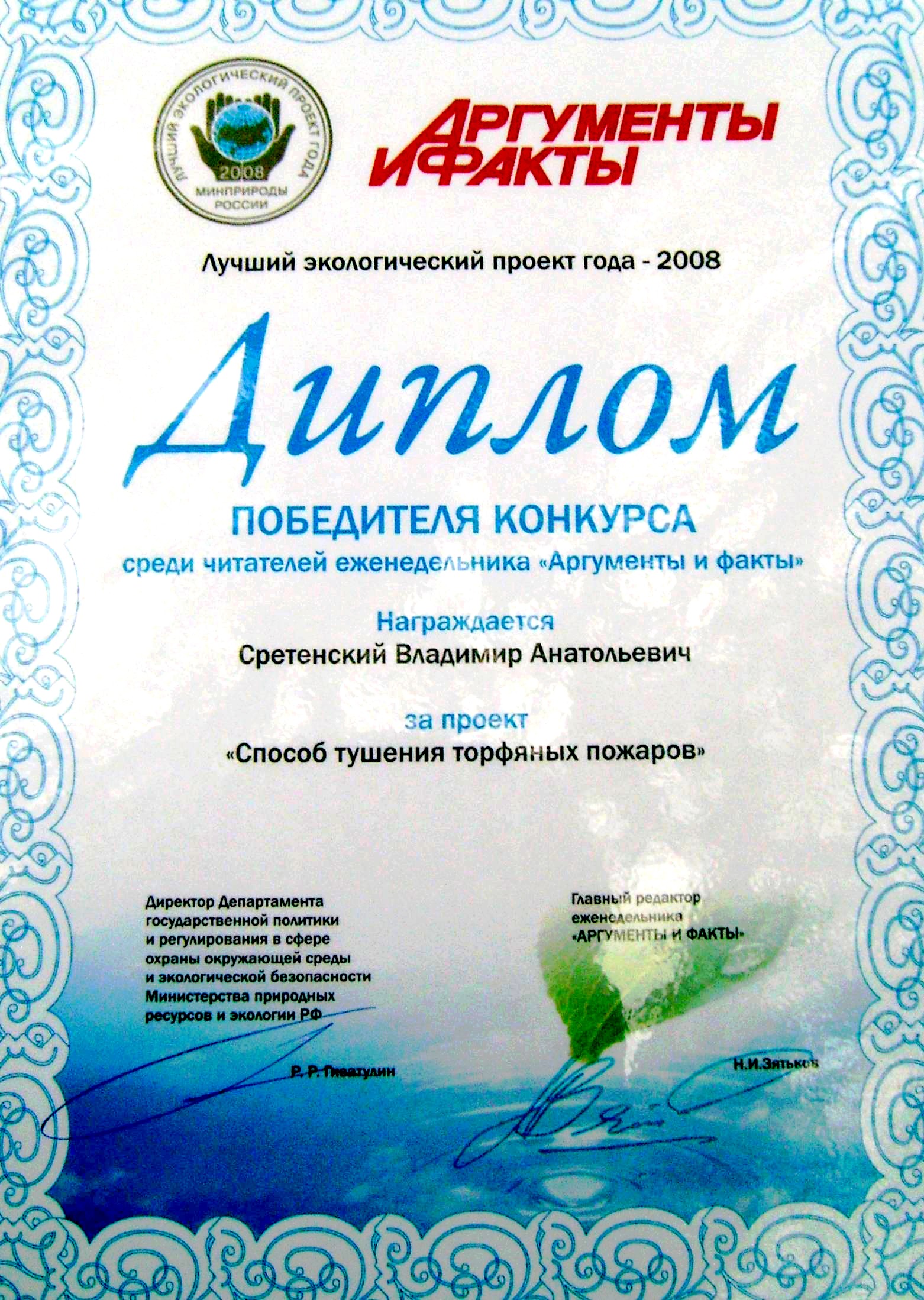 Между тем, чины от МЧС и правительства Подмосковья не могут не знать о том, что технология 100-процентного и, главное, малозатратного тушения торфяных пожаров в стране есть и успешно подтвердила свою эффективность в Удмуртии, в Новосибирской области, даже по месту разработки - в Пермском крае. 15 мая 1990 года «Способ тушения торфяного пожара» запатентовал пермский лесовод и профессор ПГУ Владимир Сретенский, позже применял его даже для ликвидации сложных возгораний на свалках и, кстати, по приглашению приезжал в ту же Шатуру, где, как по волшебству, погасил один из очагов, имея в наличии... всего один бульдозер. И когда приглашавшая сторона увидела, насколько все быстро и дешево делается, она тут же «депортировала» пермского ученого домой.