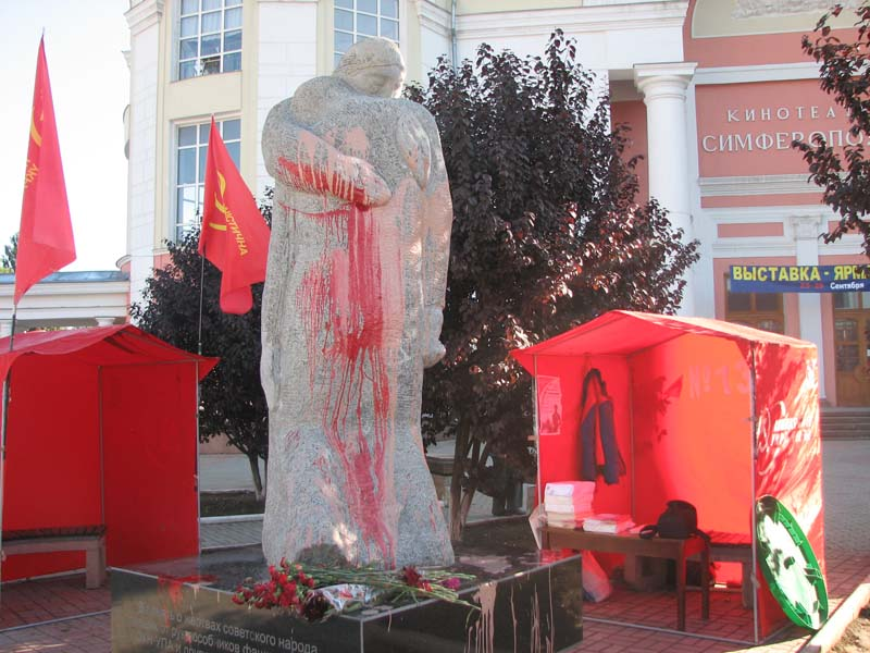 Осквернен недавно установленный в Крыму памятник жертвам бандеровского террора. КПУ установила постоянные посты у памятника погибшим от рук фашистских прихвостней сынам и дочерям советского народа - дабы акт вандализма больше не повторился. Силами коммунистов параллельно с правоохранительными органами Украины ведется расследование по факту вопиющего антисоветского вандализма.