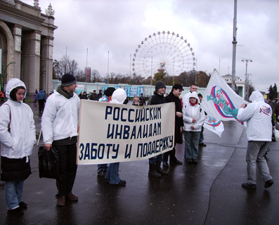Сегодня в Москве напротив главного входа на ВВЦ прошел пикет в поддержку российских инвалидов. Организатором акции выступила Партия социальной справедливости.