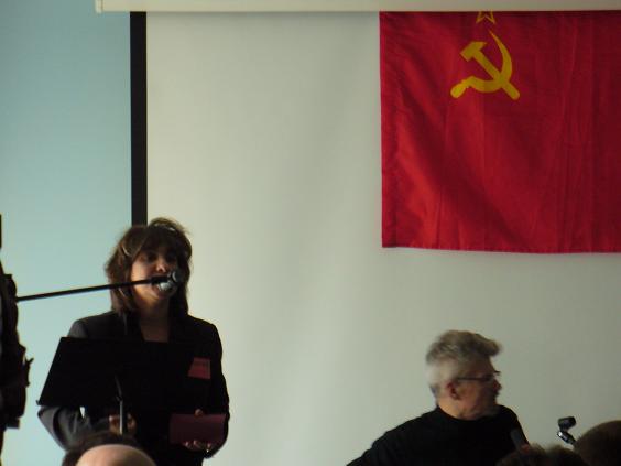 Далее выступил секретарь Карельского рескома КПРФ товарищ Меркушев. Он был рад приветствовать в зале столько молодых и оппозиционно настроенных лиц, рассказал о положении оппозиции в Карелии, об активистах из СКМ, нацболах, анархистах, за которых он и его товарищи вступаются после акций протеста, в ходе которых обязательно задерживают ребят. Вспоминая еще конец 1980-х, когда истинные коммунисты боролись простив курса Горбачева, Александр Меркушев высказал пессимистическую оценку: не используя новых методов борьбы коммунисты не имели шанса на победу. Такой шанс есть теперь - и его ни в коем случае нельзя упускать, а для этого пора забыть все распри и объединиться в Национальной Ассамблее не только друг с другом, но и с теми правыми, кто защищает права человека не в «общественной палатке» при президенте, а в действительности.