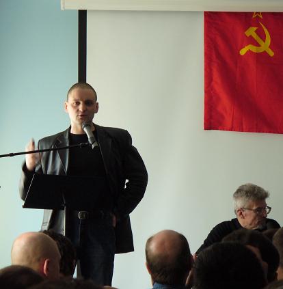 Сергей Удальцов выступил весьма оптимистично и высказал мнение, что именно собравшиеся в зале молодые люди, молодые и новые левые будут властью в стране, разворовываемой сейчас кучкой приватизировавших власть подонков.
