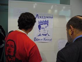 Только что вернулся с площади Революции, где проходил митинг, посвященный 91-й годовщине Великого Октября. Надо сказать, что независимо от лидеров этой традиционной вопреки запретам власти демонстрации, она проходит с каждым годом все боевитее. И есть определенный прогресс - возможно, тут и сказалась медведевская, а точнее лужковская оттепель.