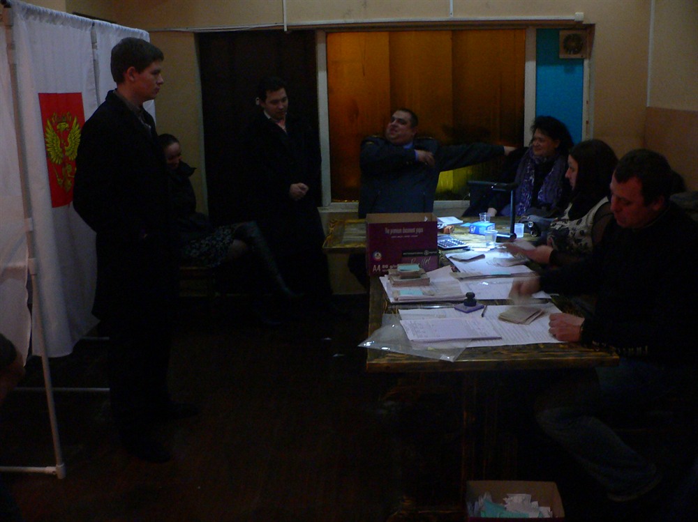 Выяснилось, что на участке уже успели проголосовать 1033 человека, т.е. явка составляет примерно 50%. Хотя ни одного голосовавшего, присутствующие с 18.00 наблюдатели, не застали. Ответ председателя не заставил себя долго ждать, - «Все проголосовали до приезда наблюдателей»