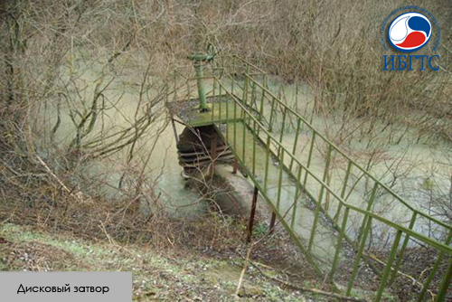 Как видим, "пруд" имеет уровень в 182 метра и 8 миллионов кубометров воды. Более того, есть у него, конечно, и водосброс шахтного типа, и дисковый затвор - все на картинках.