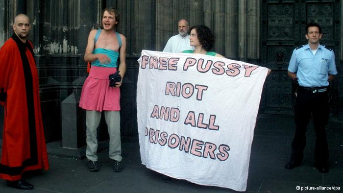 Во время воскресного богослужения в Кельнском соборе сторонники российской панк-группы Pussy Riot устроили акцию протеста. Утром 19 августа после окончания проповеди два молодых мужчины 23 и 25 лет и 20-летняя девушка направились к алтарю, выкрикивая лозунг "Free Pussy Riots" ("Свободу Pussy Riot").