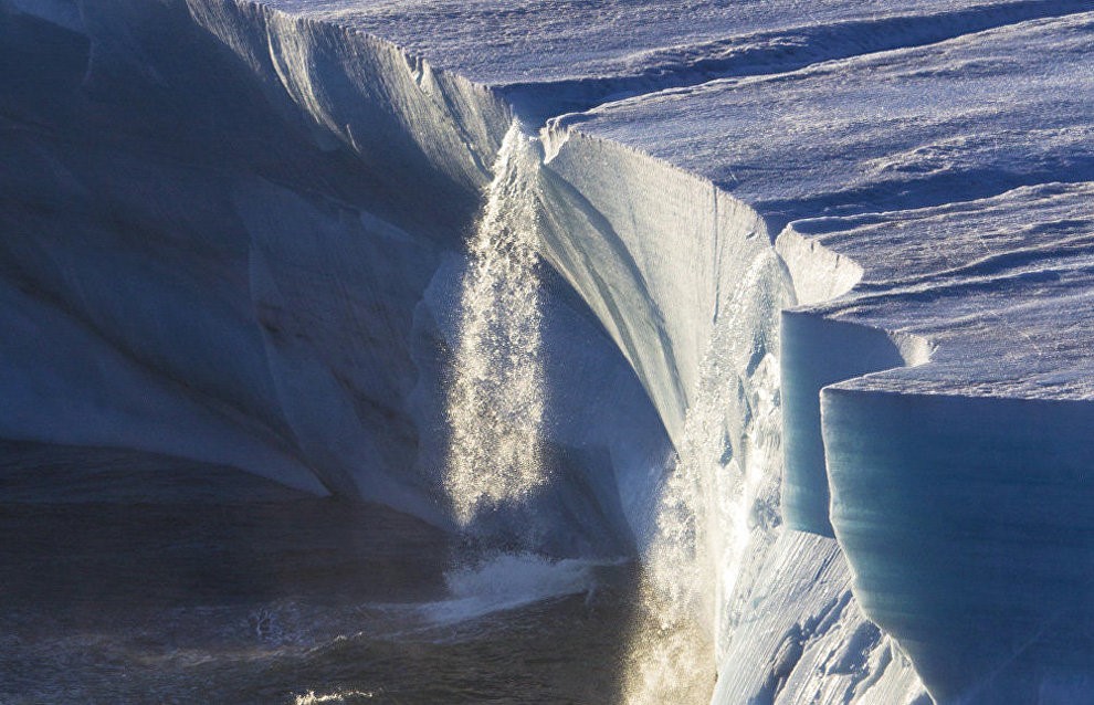 Водопад с тающего ледника. Земля Франца-Иосифа.