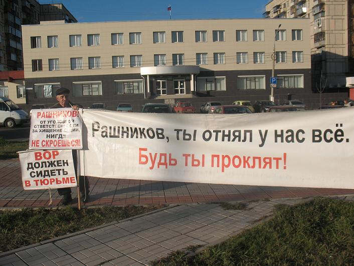 Обокрали нас 30.10.2003 года, а с 2004 года ходим мы в пикеты. Нас била милиция, таскали по судам, гнобила прокуратура.