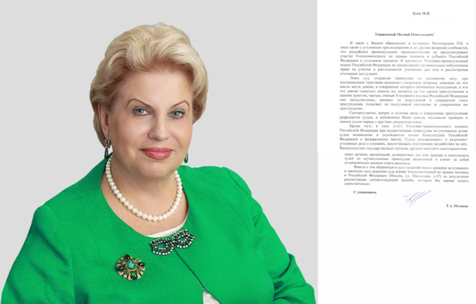 Мои адвокаты, в числе прочего, по моей просьбе обратились к уполномоченному по правам человека в г. Москве госпоже Потяевой. Отмечу, что её контакты, наряду с адресами прокуратур и прочих надзорных органов, висят в каждой камере Бутырки. Типа, хотите жаловаться? Вот, пожалуйста.