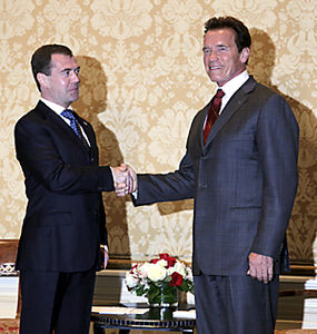 Так вот, Медведев, если бы в США поехал настоящий Президент, то он бы не умилялся Шварцем и не говорил банальностей. С ним в Калифорнию прибыл бы и поныне живой Юрий Власов. Он бы потрепал бы постаревшего Терминатора за щеку и сказал бы: «Молодец, парень, послушался моего совета!» И весь мир бы увидел, как Шварц тискает в объятиях советского учителя. И тем самым мы бы прославили свой народ, свою страну. Подняли бы на щит русское имя. Ты понимаешь, как ты прохлопал великолепный шанс для пропагандистского хода всемирного размаха? Ах, ну да... Пиарщики нынешней кремляди - они же такие же убогие штамповки, как и ты - масс-культурой сформированные, перед Америкой пресмыкающиеся.