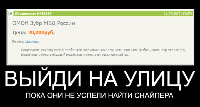 А милиционеры региональные, от центра и его корыта отдаленные, понимая, что и их кризис коснется, уже обращаются в рабочие настоящие профсоюзы - так что и не всякий милиционер готов быть ментом и цепным псом силовигархов. Хотя, наемников власть и холит. Их, как и её самоё - меньшинство, это надо помнить.