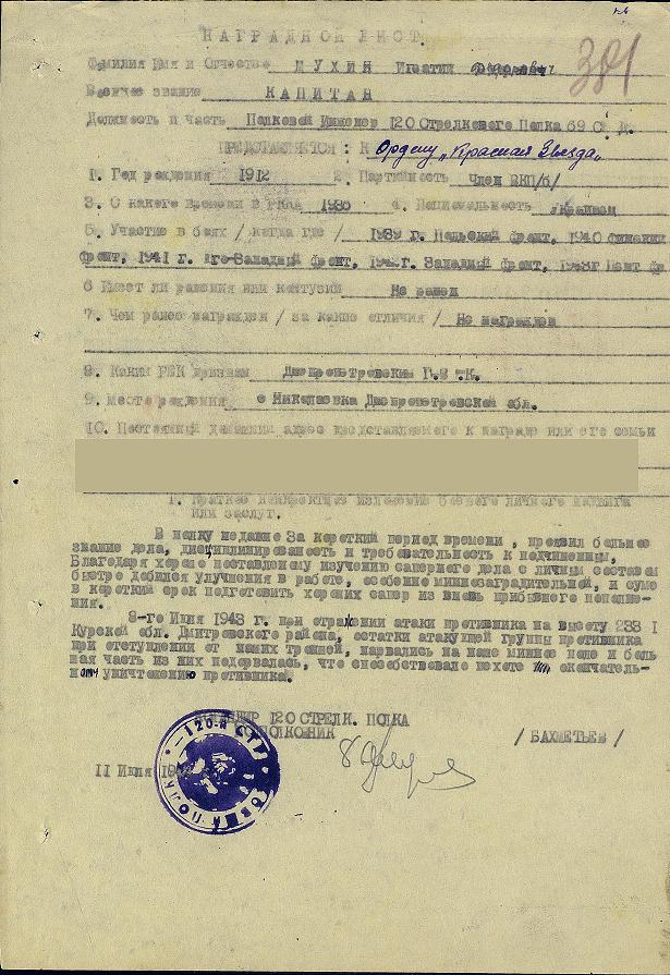 Участвовал отец и в Курской битве, и здесь, наконец, сошлись вместе все составляющие, необходимые для получения награды. Вопреки утверждению Гинденбурга, ордена оказались не в том мете, где их дают, а в том месте, где их заслуживают.