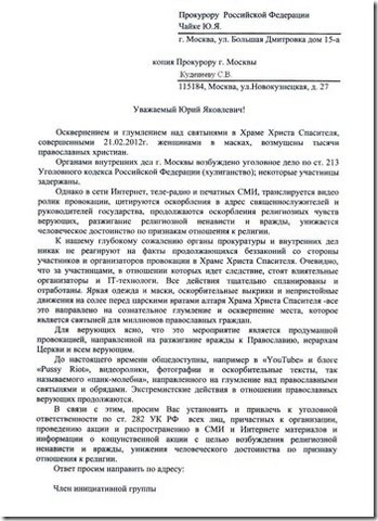 А вот это анонимный доносик в прокуратуру, которую сегодня зачитывается в разных храмах.Очень достойно.
